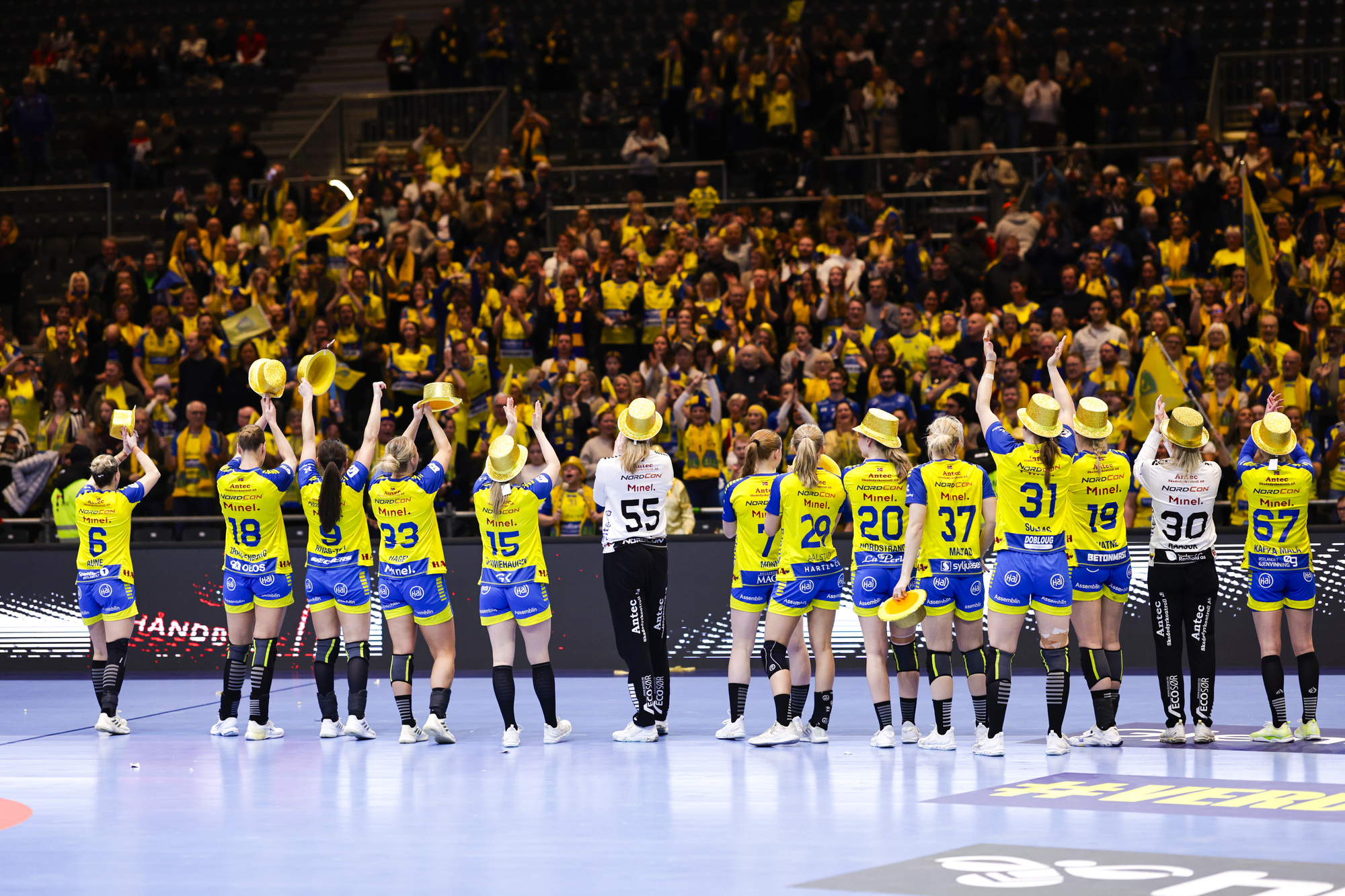 Fornebu 20251228. Storhamar jubel etter seieren i NM finalen i håndball senior kvinner mellom Larvik og Storhamar Elite på Unity Arena Foto: Christoffer Andersen / NTB
