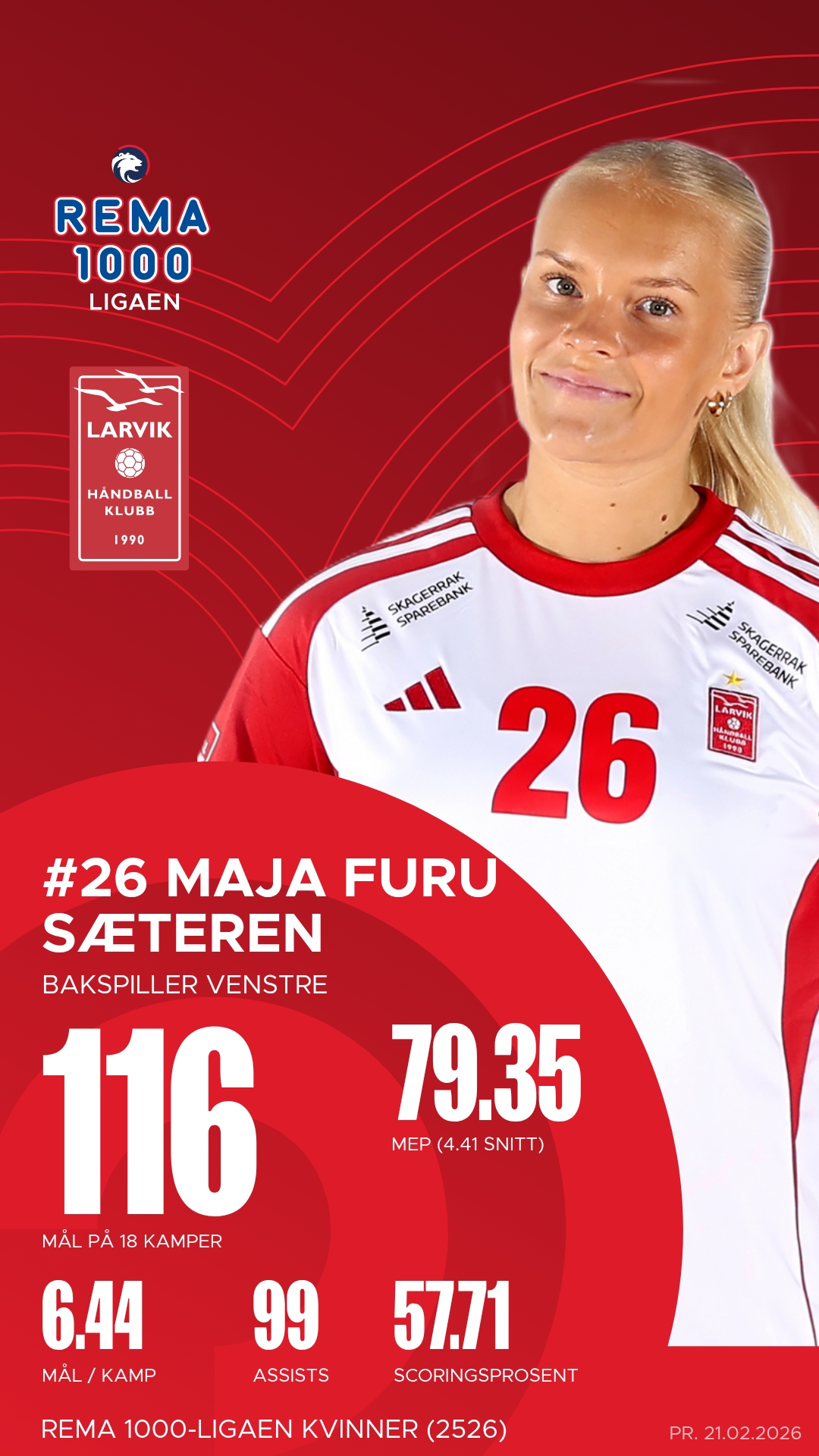 For Larvik er det flere profiler som har markert seg tydelig denne sesongen. Maja Furu Sæteren har vært i en klasse for seg, en ekte motor i laget med både målteft og spilleforståelse som få matcher. Tirill Alexandrine Solumsmoen Mørch på linja har også vært en bauta i duellspillet og en viktig avslutter fra trange posisjoner. Sammen utgjør de en offensiv kraft som kan rive opp selv det mest kompakte forsvar.