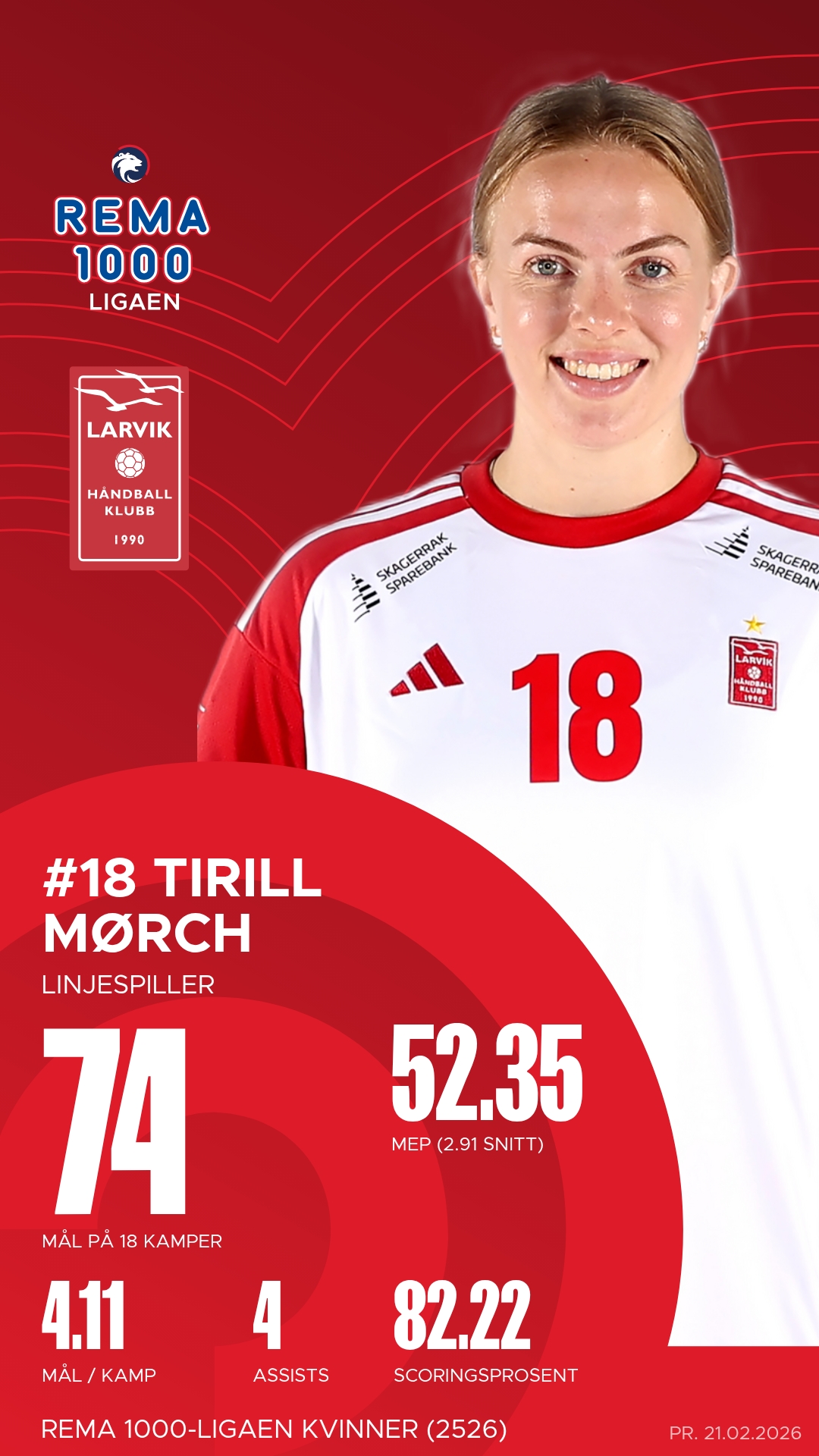 Larvik ligger for øyeblikket på tredjeplass på tabellen etter 19 spilte kamper. Laget har ligget i toppen gjennom hele sesongen, og etter å ha åpnet med flere runder på tabelltopp, har de holdt seg trygt innenfor medaljekampen. Molde har hatt en imponerende stigning gjennom sesongen – fra en svak åpning har de klatret opp til en solid fjerdeplass. Det vitner om et lag i god utvikling.