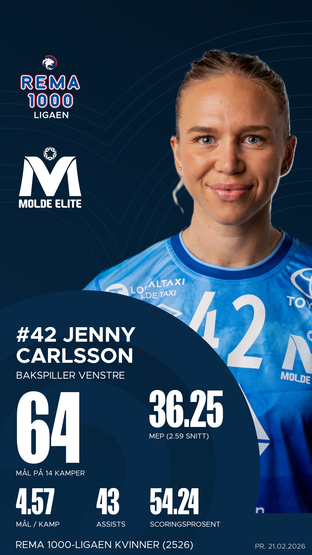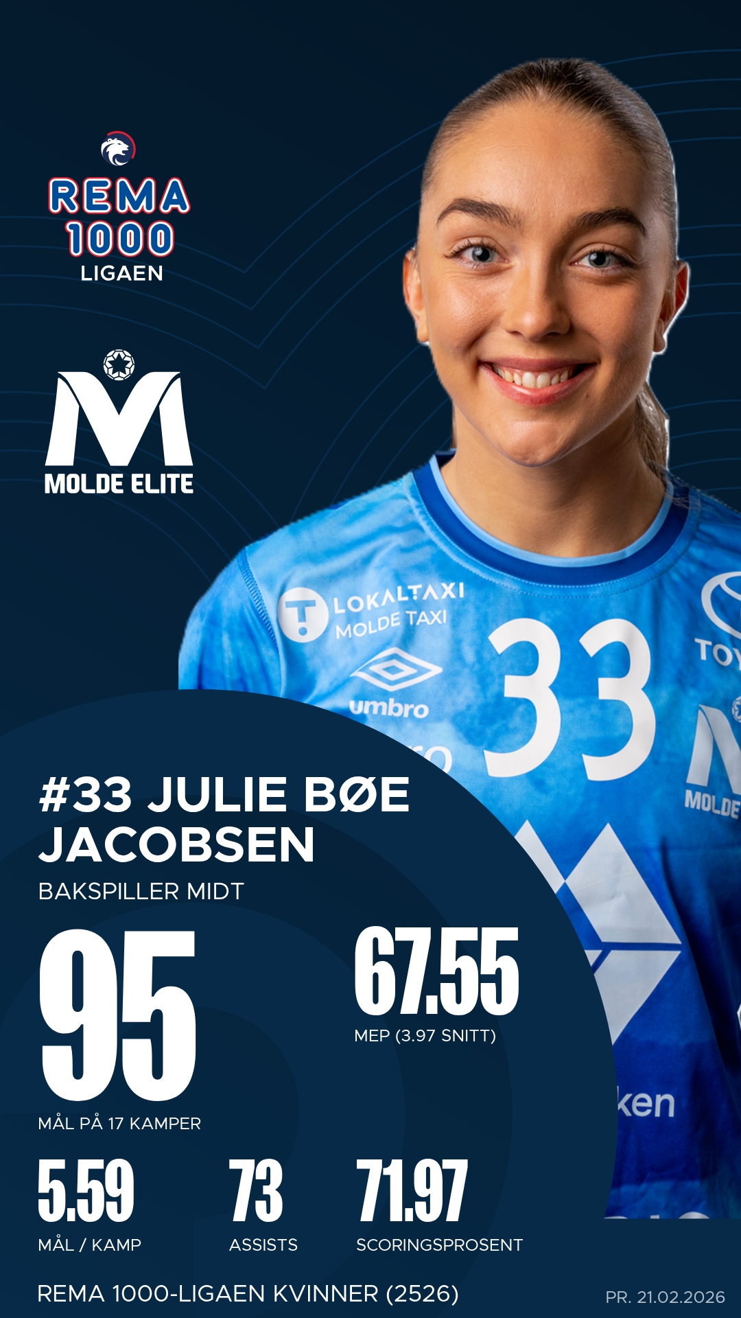 Hos Molde er det særlig Julie Bøe Jacobsen som har vært lagets store profil. Hun styrer angrepsspillet med autoritet, leverer både mål og assists på høyt nivå og er ofte den som setter tempoet i overgangsspillet.